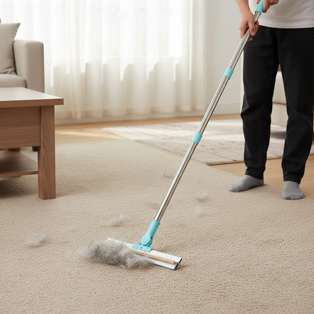 This is not another weak brush or disposable roller. The Adjustable Hair Removal Brush is designed to physically pull embedded pet hair out of carpets, rugs, sofas, and corners — fast, effortlessly, and without bending or kneeling.